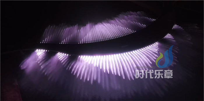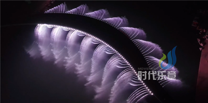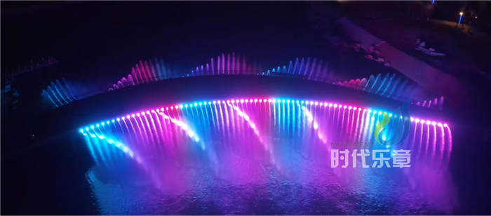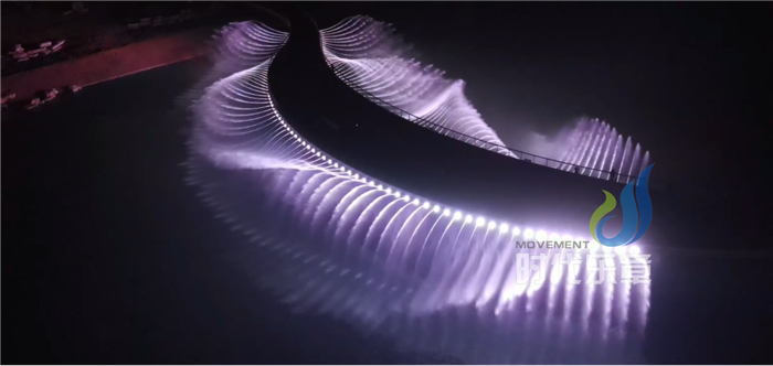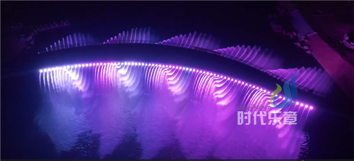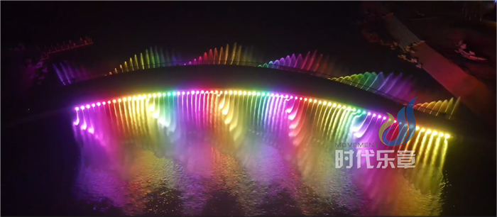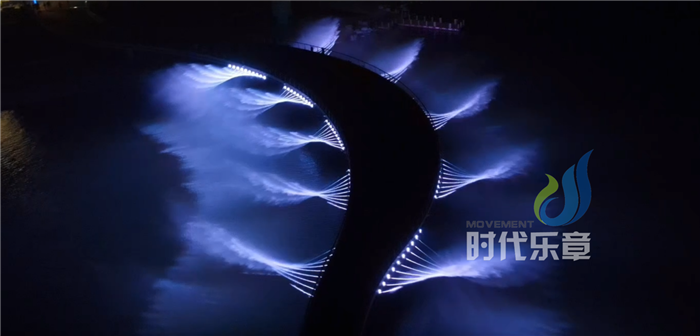 該項目位于山西省晉城市沁水縣與陽城縣嘉峰鎮三河口景觀A橋,數碼噴泉安裝于橋體兩側,設計采用一維數碼跑泉造型,長度為100米,橋體兩側智能數碼噴泉陣列,150組可旋轉噴頭實現水柱毫秒級波浪跑動與搖擺舞動。DMX512控制系統同步驅動RGBW燈光,使水流在橙藍漸變中實時呼應音樂節奏。古典樂章下呈現水幕五線譜,電子樂時演繹像素動畫,配合水面倒影構筑立體光影長廊,以數字流體藝術重塑城市夜景。