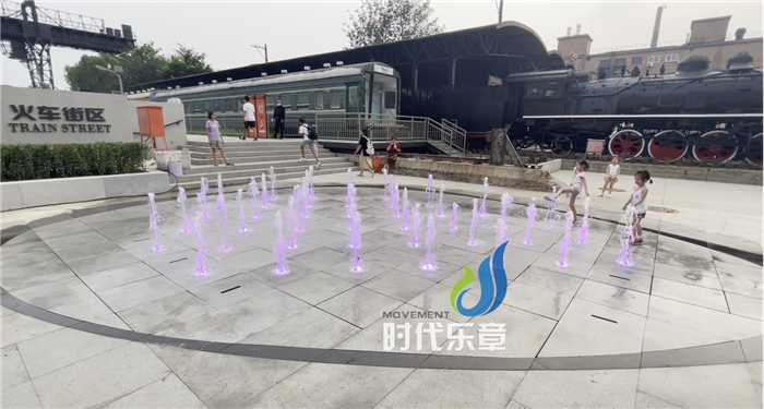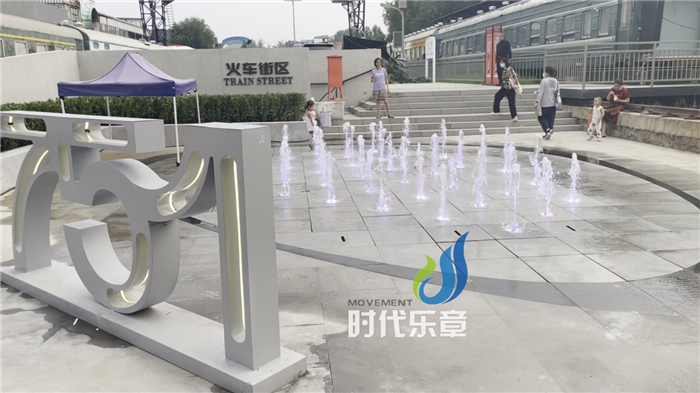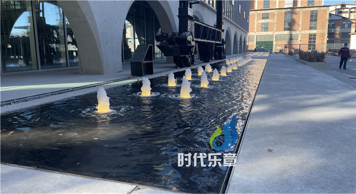 該項目位于751藝術區火車頭廣場,由旱地音樂噴泉、圖書館水景、水處理系統三部分組成,其中旱地音樂噴泉采用24V低壓水泵,滿足游客戲水要求,音樂噴泉共有兩種運行模式,一種為燈光噴泉表演模式,一種為手勢互動噴泉模式。