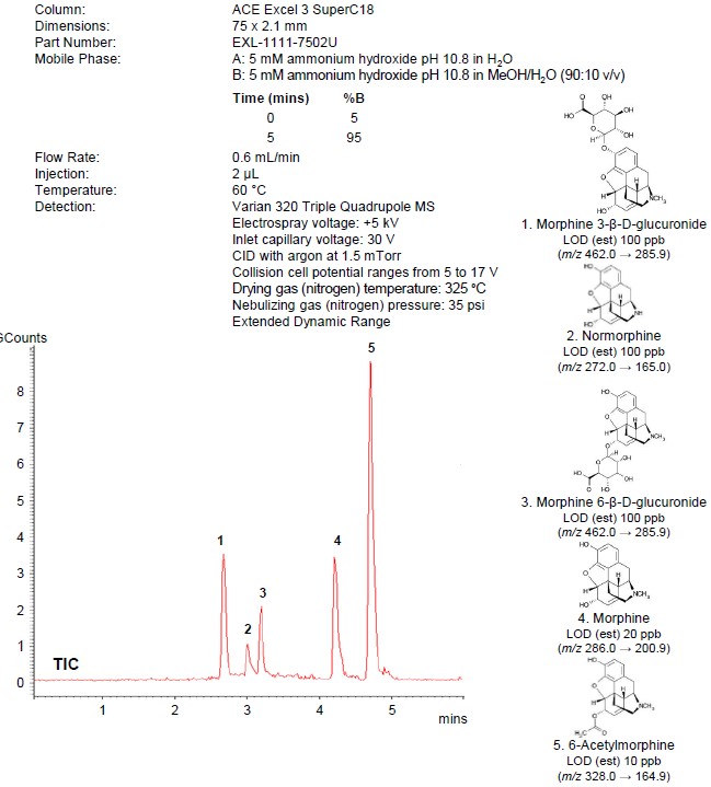 此為ACE特有的EBT技術(封裝鍵合技術),最大程度地消除殘留硅醇基的影響,特別適合維持堿性化合物的優異色譜峰形,同時可以耐受1.5-11.5的寬pH范圍。比如: