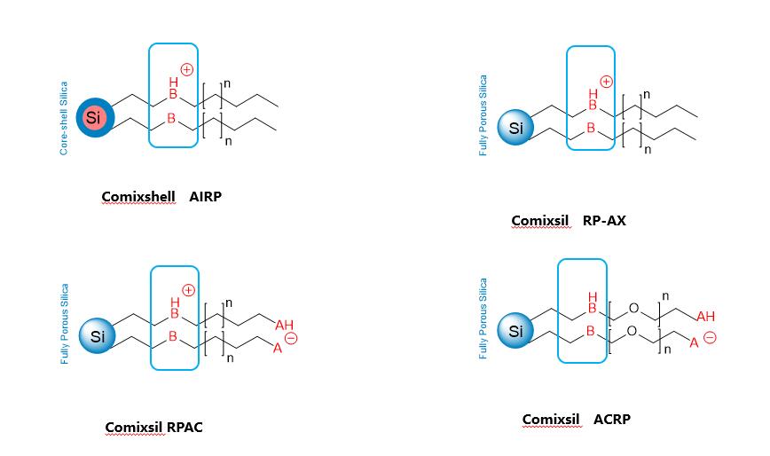 對(duì)于含有強(qiáng)堿性基團(tuán)的固定相,如: