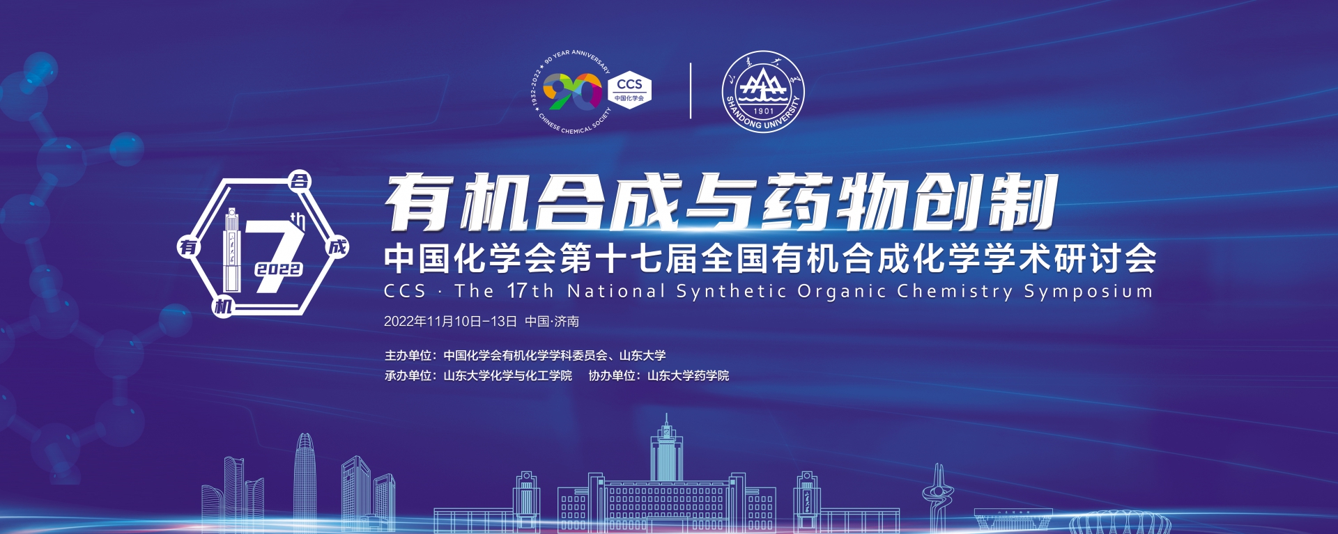 中國化學(xué)會(huì)第十七屆全國有機(jī)合成化學(xué)學(xué)術(shù)研討會(huì)定于2022年11月10至13日在山東省濟(jì)南市舉行。本次會(huì)議由中國化學(xué)會(huì)有機(jī)化學(xué)學(xué)科委員會(huì)、山東大學(xué)共同主辦,山東大學(xué)化學(xué)與化工學(xué)院承辦,山東大學(xué)藥學(xué)院協(xié)辦。