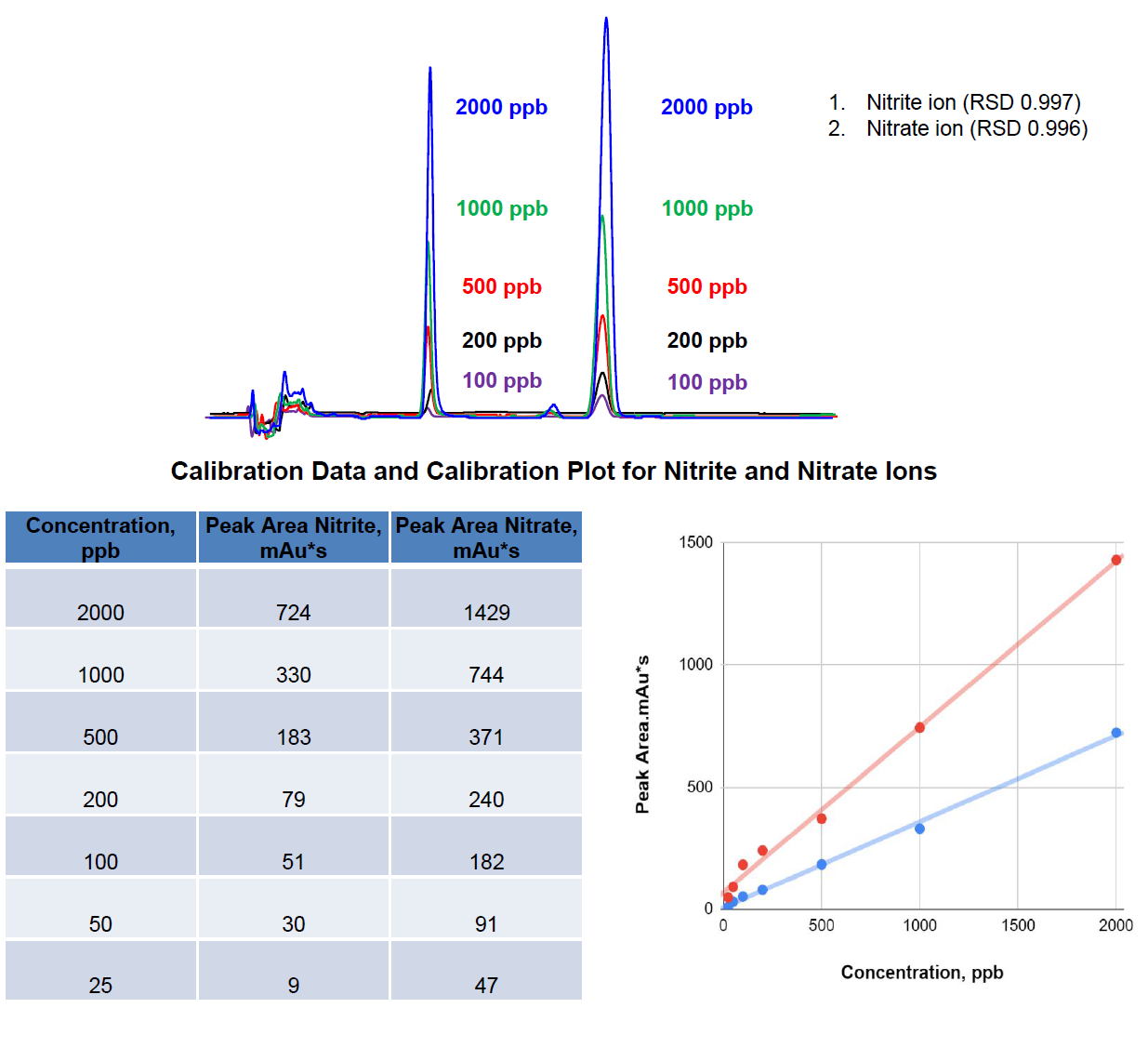 方法說明:某藥物中亞硝酸根與硝酸根殘留量的檢測(cè)。我們獲準(zhǔn)公布與分享這兩個(gè)離子的線性數(shù)據(jù)。 Comixsil HAX是陰離子交換+Hilic的混合模式色譜柱。此案例中將進(jìn)樣量提升至100ul將再升LOD/LOQ 。ACN可以用于去除分析中其它非離子的不希望要的化合物的干擾(Hilic下不保留)。同時(shí)如果樣品中有其它堿性化合物,基于陽離子排阻,將很快洗脫出峰不干擾。 |