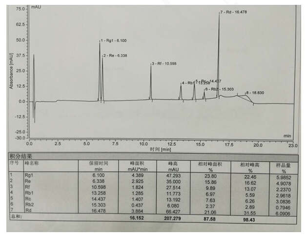 注:樣品用50%甲醇溶解